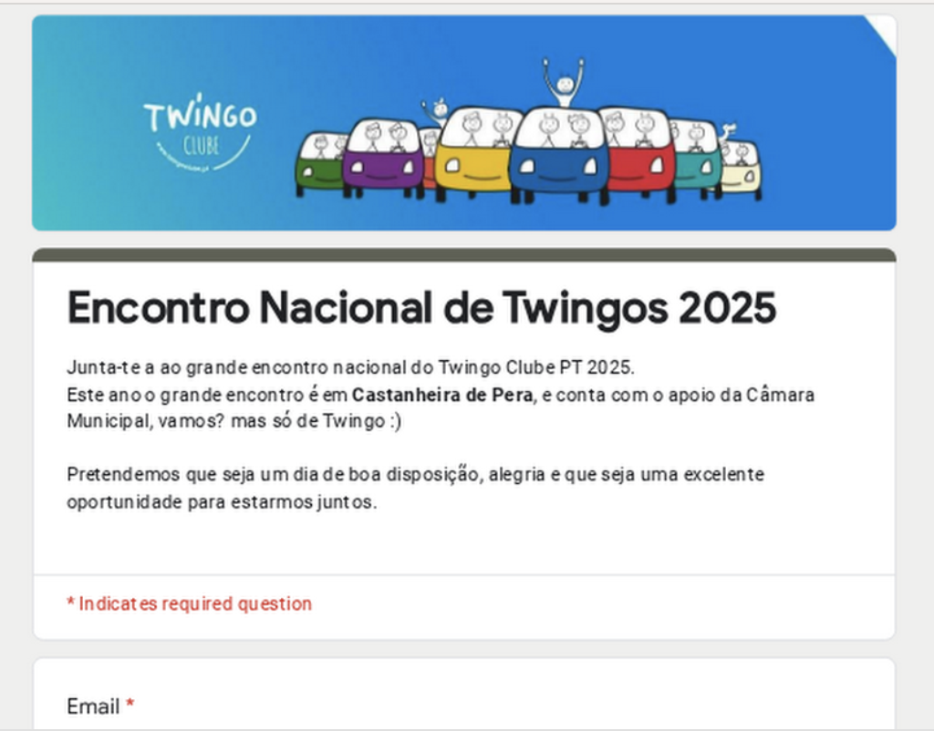 Junta-te a ao grande encontro nacional do Twingo Clube PT 2025. Este ano o grande encontro é em Castanheira de Pera, e conta com o apoio da Câmara Municipal, vamos? mas só de Twingo 🙂